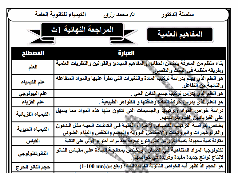مراجعة نهائية للكيمياء للصف الاول الثانوى 2016 للدكتور محمد رزق فى 27 ورقة