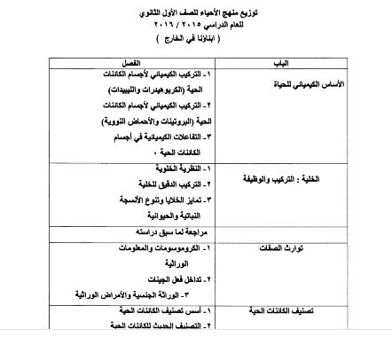 توزيع منهج الاحياء لكل فرق ثانوى للترمين للمنهج المقرر لعام 2016 و على أبنائنا خارج وداخل مصر
