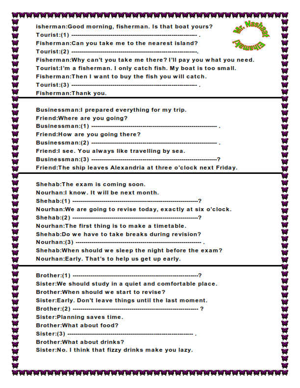 محادثات اللغة الإنجليزية لامتحان نصف العام للصف الثالث الاعدادى