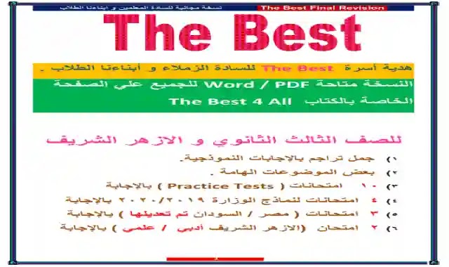 كتاب The Best للمراجعة النهائية فى اللغة الانجليزية للصف الثالث الثانوى 2020