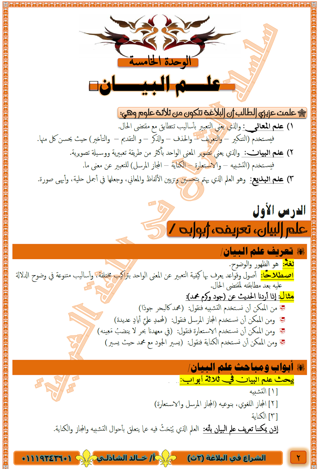 بلاغة اولى ثانوى الترم الاول اجمل جديد