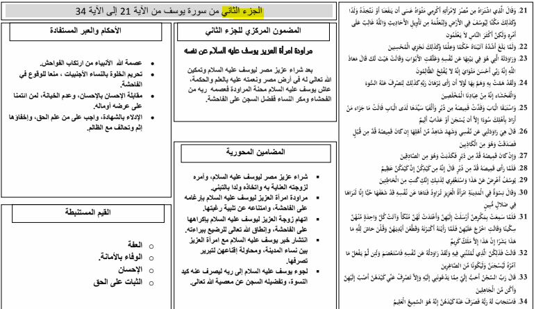 القرآن الكريم سورة يوسف الجزء الثاني للأولى باك جميع الشعب