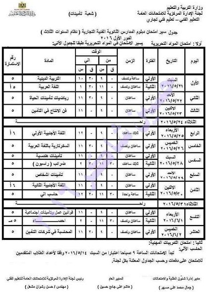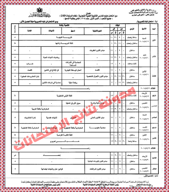 جدول امتحانات الدبلومات الفنية التجارية نظام ثلاث سنوات الدور الأول 2019 كلمة دوت أورج