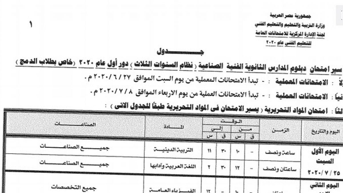جدول امتحانات الدبلومات الفنية 2020 بعد اعتماده رسمي ا من وزارة التربية والتعليم كلمة دوت أورج