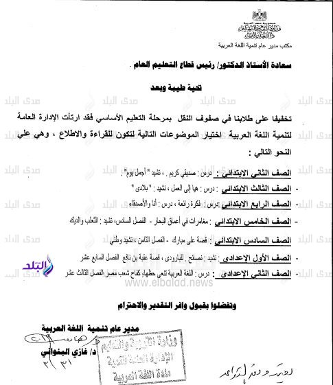 الأجزاء المحذوفة فى اللغة العربية من أولى ابتدائى إلى الثانوية العامة اليوم السابع