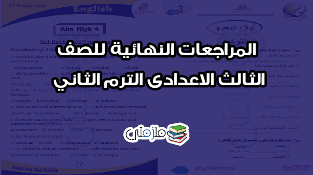 المراجعات النهائية للصف الثالث الاعدادى الترم الثاني ملزمتي