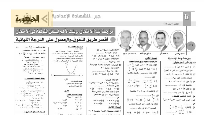 الملحق التعليمى لجريدة الجمهورية للشهادة الاعدادية