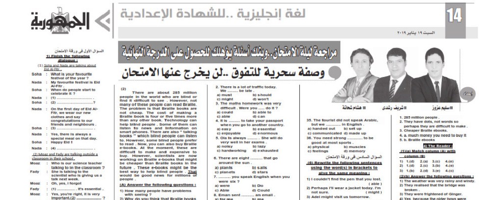الملحق التعليمى لجريدة الجمهورية للغة الانجليزية للشهادة الاعدادية ترم ثانى 2019