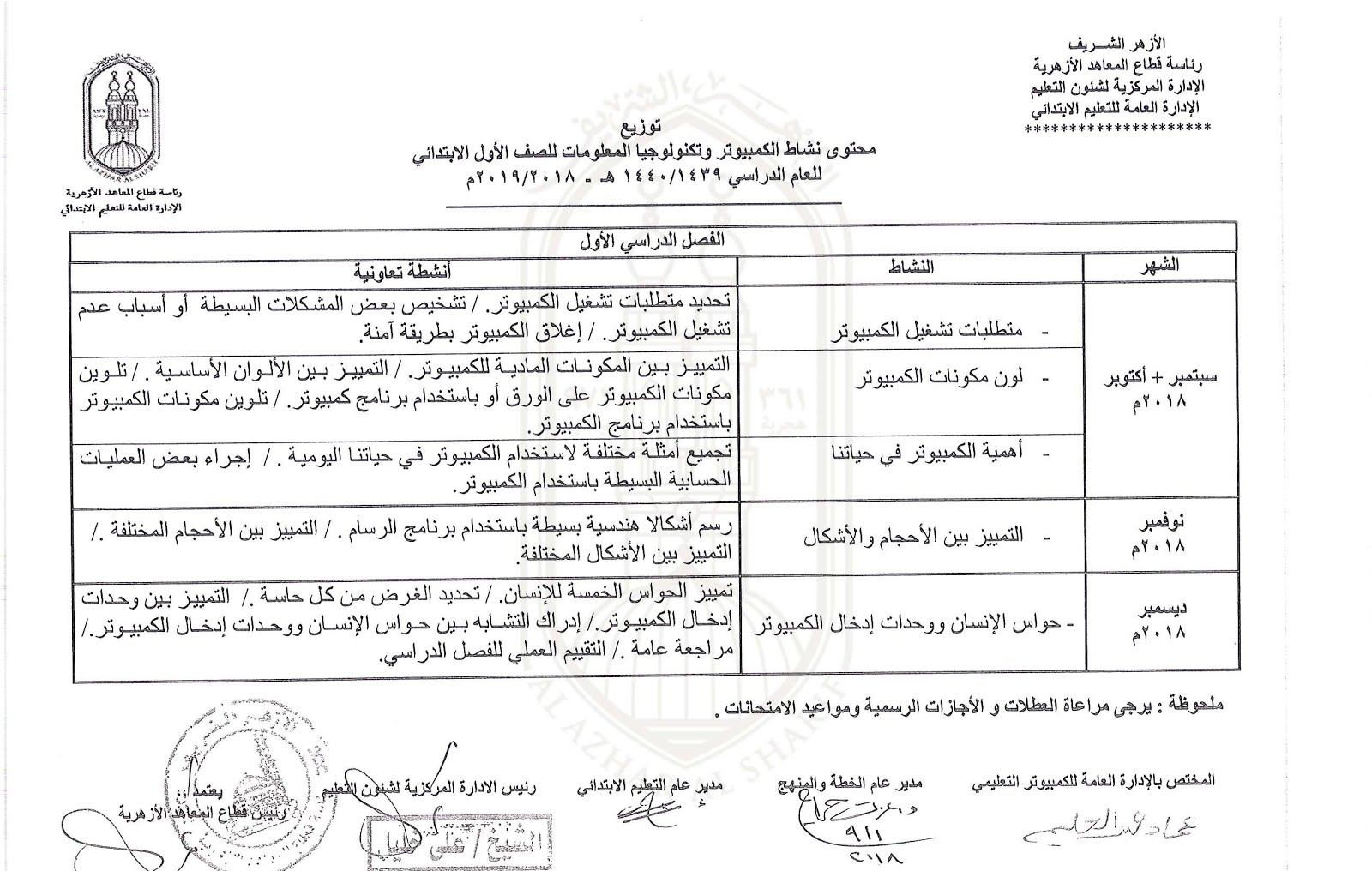 زاد الطالب المناهج والخطة الدراسية لكل صفوف المرحلة الابتدائية الأزهرية 2018 2019
