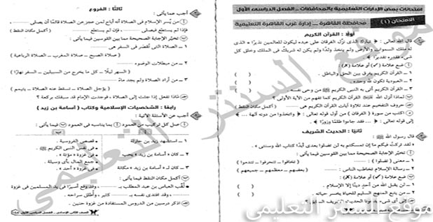 كراسة امتحانات الدين للصف الثانى الاعدادى الترم الاول 2020 للعام السابق