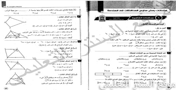 كراسة امتحانات هندسة للصف الثانى الاعدادى الترم الاول 2020 للعام السابق