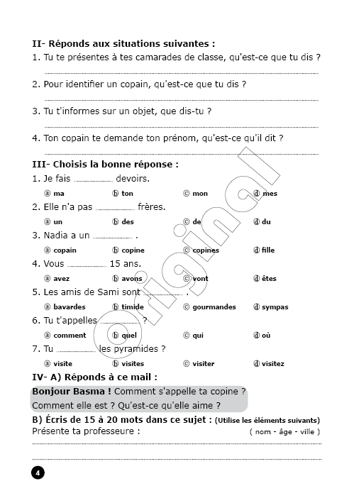 امتحان فرنساوي اولى ثانوي نظام جديد الوحدة الثانية نموذج B من Original