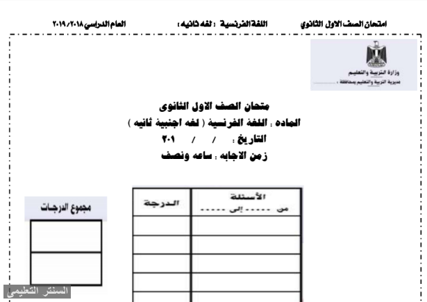 امتحانات فرنساوى اولى ثانوى ترم ثانى 2019