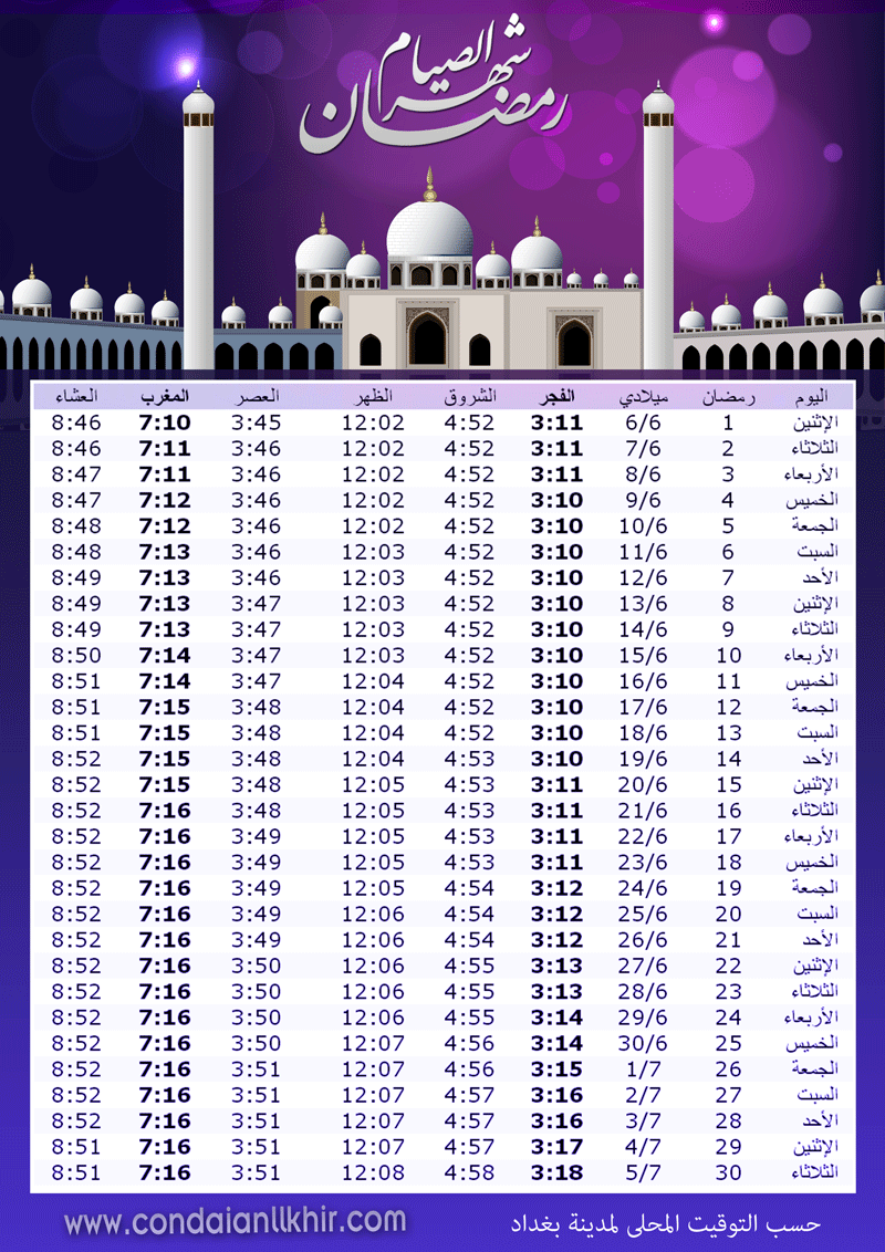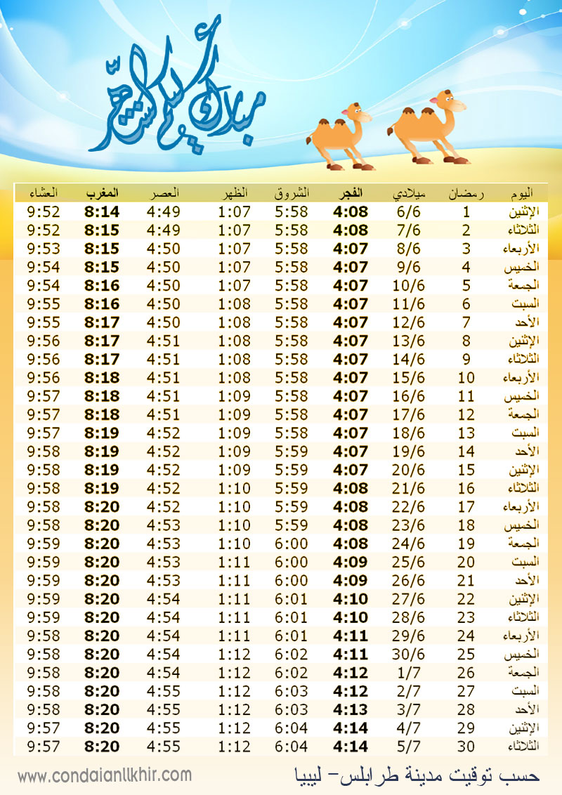 امساكية رمضان لكل العواصم العربية 2016 1437 منسقة رمضان كريم بوابة الإتجاه الشاملة