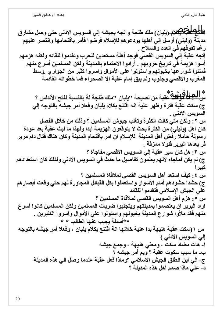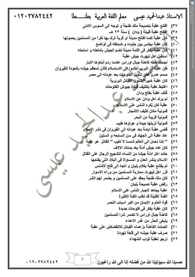 مراجعة نهائية لقصة عقبة بن نافع للصف الاول الاعدادي ملزمتي
