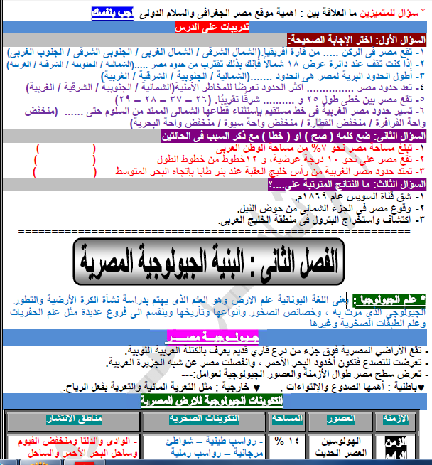 تحفة مذكرة مراجعة ليلة الامتحان سؤال وجواب فى الجغرافيا للصف الاول الثانوى 2016 عجايبى ميلاد