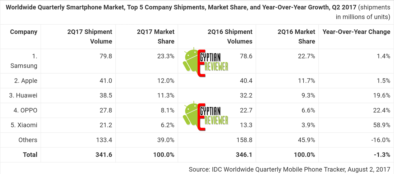 ترتيب شركات الموبايلات عالميا 2017