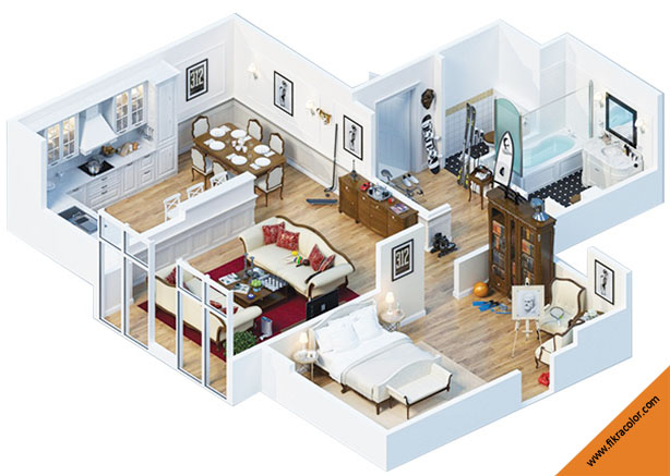 تصاميم منازل و شقق مساحات كبيرة ومتوسطة Fikra Color Fikra Color