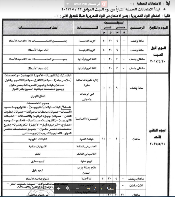 جدول امتحانات الدبلومات الفنية 2017 ملزمتي