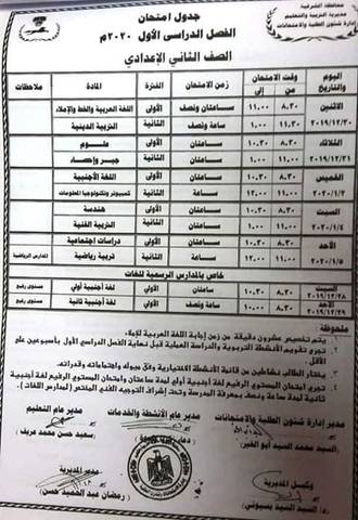 جدول امتحانات الصف الثالث الاعدادي الترم الاول 2019 2020 أحداث اليوم