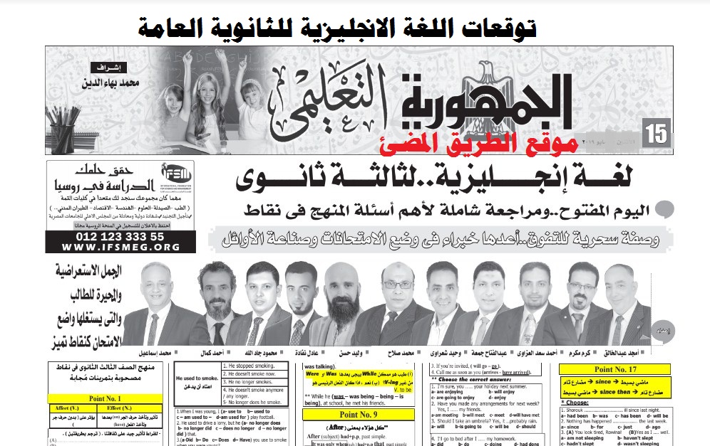 توقعات ملحق الجمهورية التعليمي لامتحان اللغة الانجليزية للصف الثالث الثانوي الجمهورية أون لاين