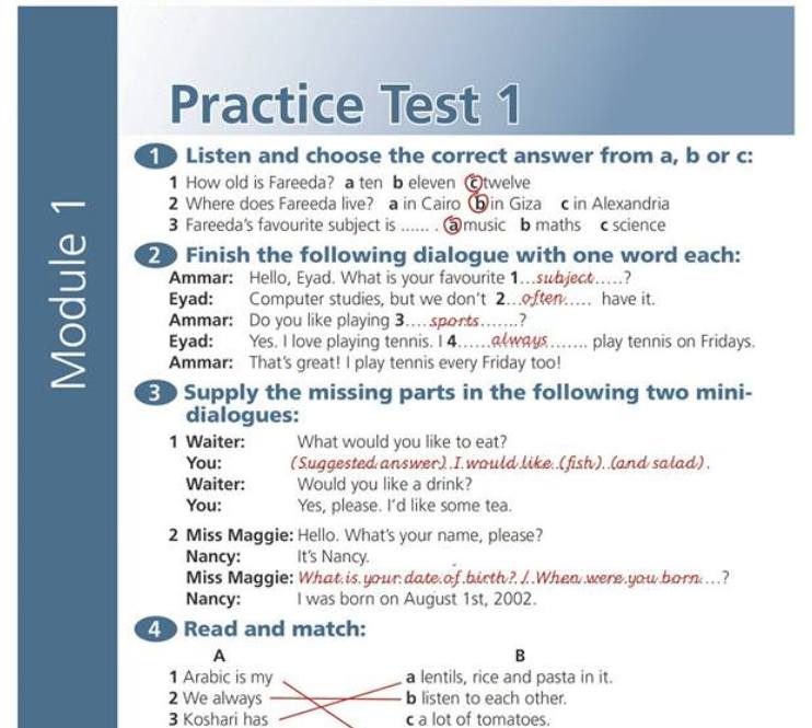 اجابات Practice Tests ورك بوك اولي ثانوي 2017 ترم اول بوابة كويك لووك العربية