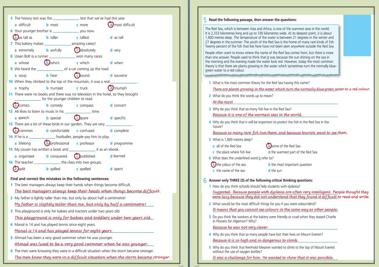 اجابات امتحانات Work Book لغة انجليزية للثالث الثانوي 2016