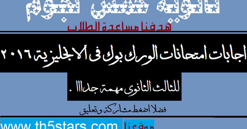 اجابة الامتحانات الاكثر توقعا امتحانات الورك بوك لغة انجليزية ثانوية عامة 2016