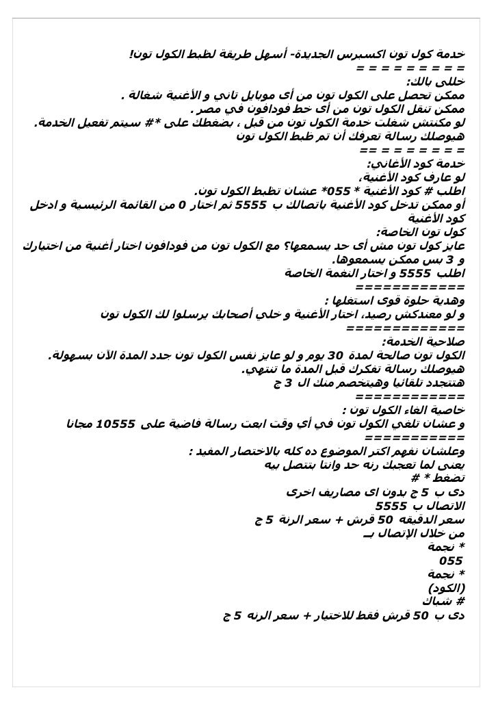 كود الغاء كول تون فودافون وكيفيه الاشتراك به وقيمة اشتراكها زيادة