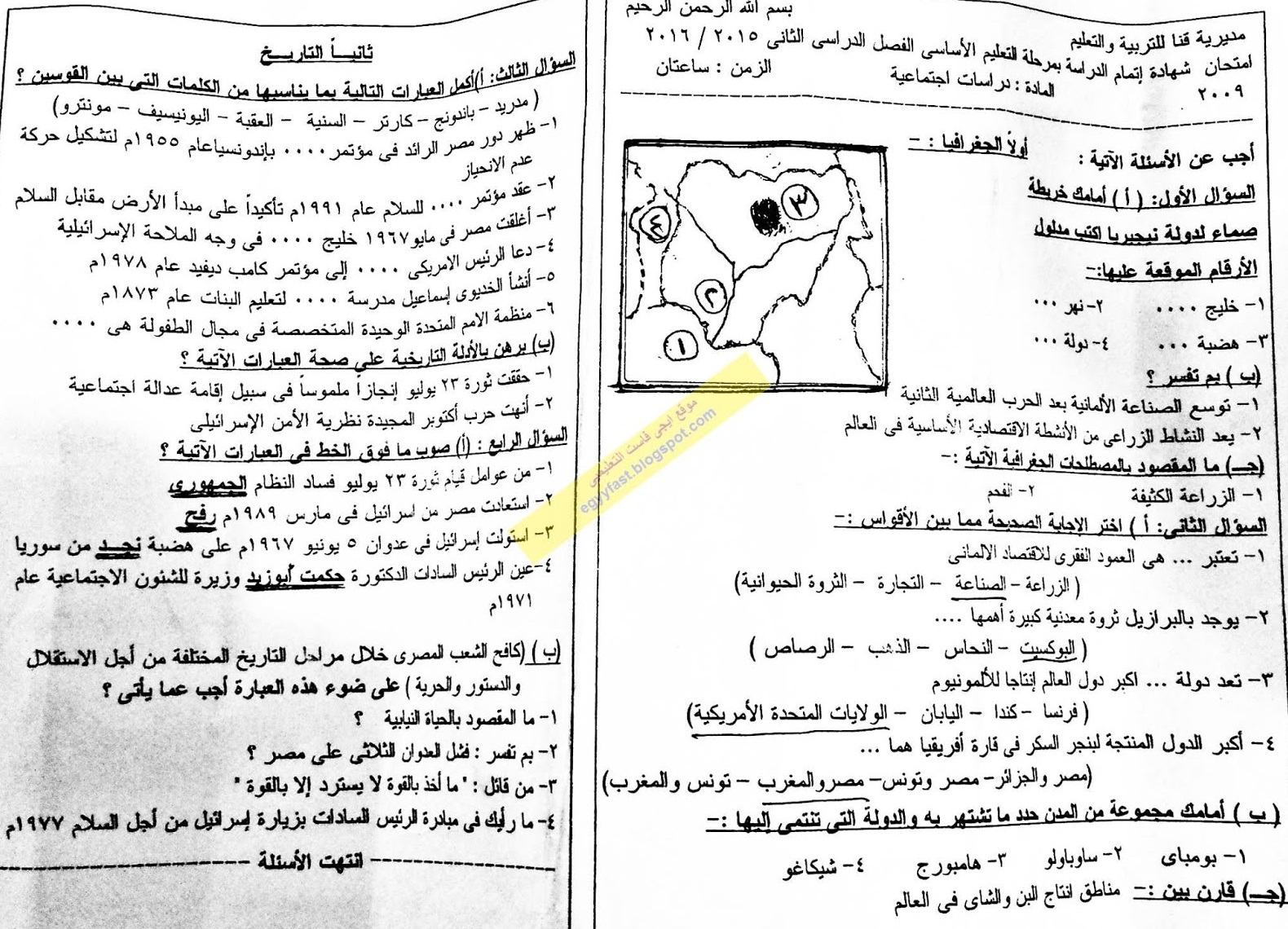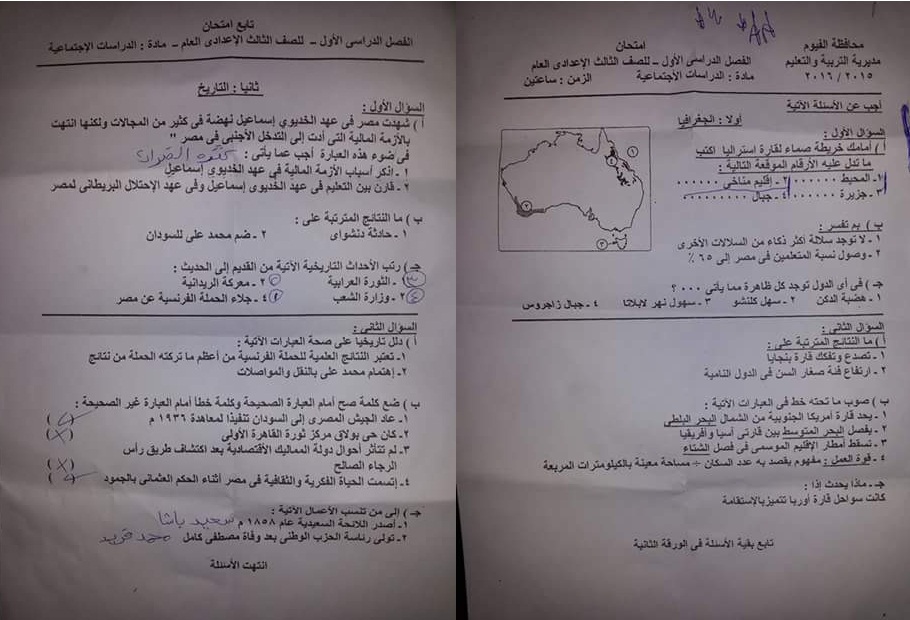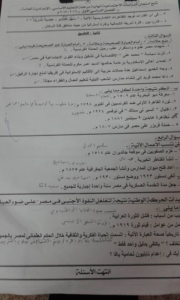 الإسكندرية امتحان الدراسات الإجتماعية للشهادة الإعدادية نصف العام 2016 Omniawagdy