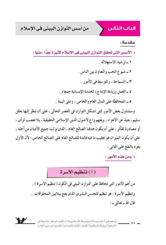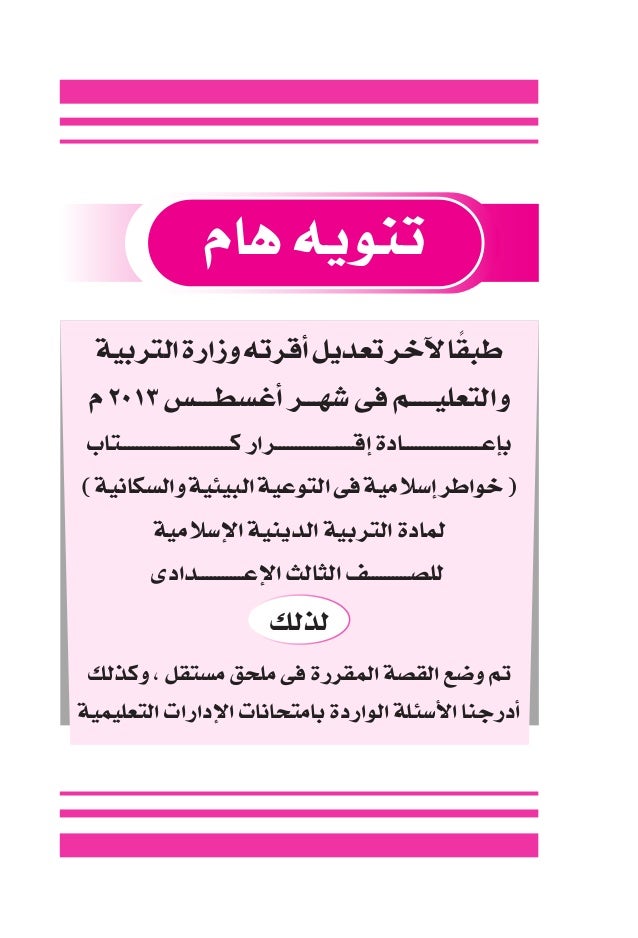 كتاب خواطر اسلامية للصف الثالث الاعدادى Pdf نسخة التابلت والكمبيوتر والموبايل