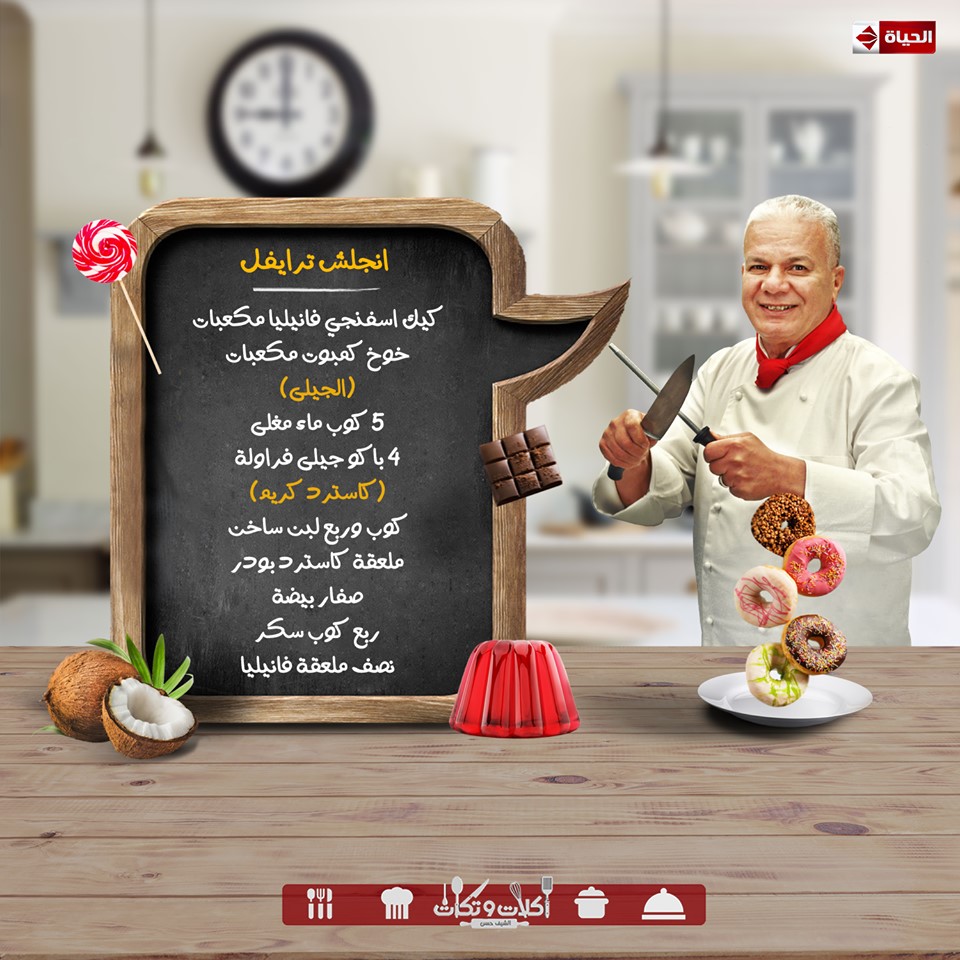 طريقه عمل انجليش ترايفل بطريقه الشيف حسن من برنامج اكلات وتكات على قناه الحياة الشيف حسن