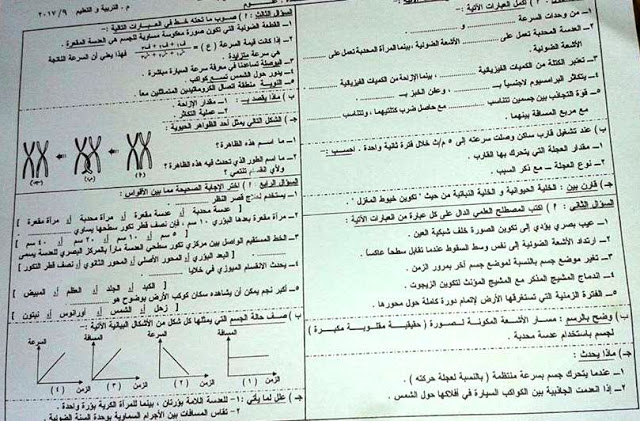 ورقة امتحان علوم للصف الثالث الاعدادي الترم الاول 2017 اسيوط
