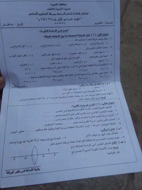 ورقة امتحان علوم للصف الثالث الاعدادي الترم الاول 2017 الغربية