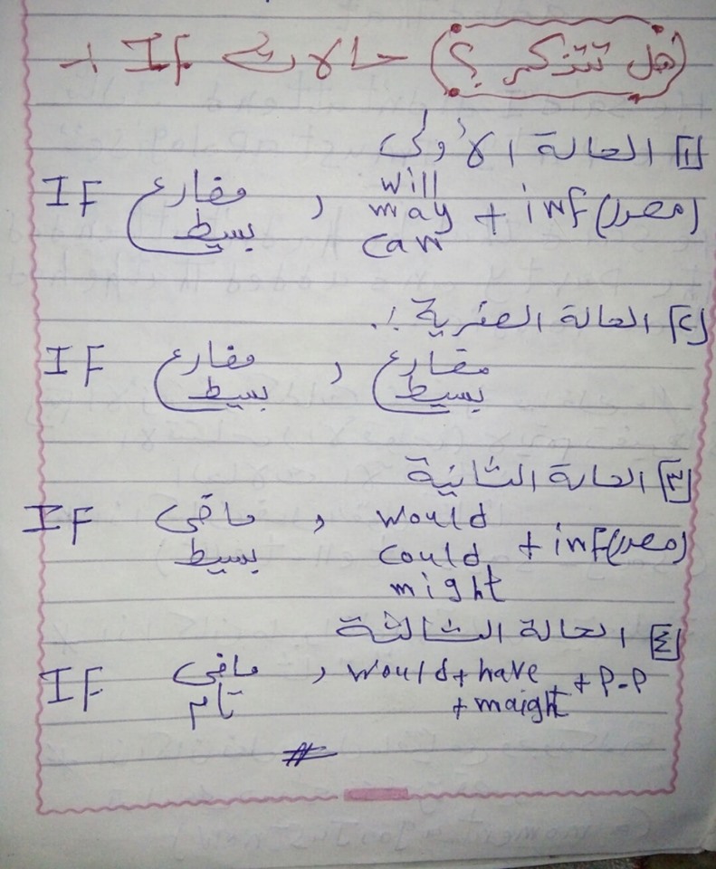 لغة انجليزية ملخص قاعدة If في ورقة واحدة