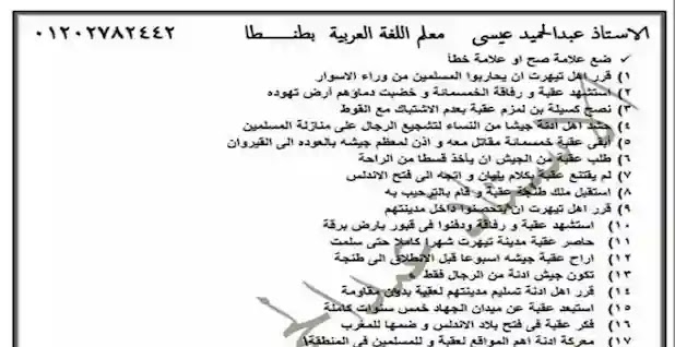 مراجعة قصة عقبه بن نافع للصف الأول الإعدادي ملزمتي