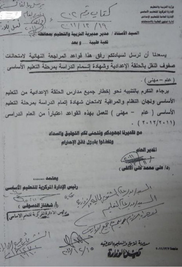 قواعد المراجعة النهائية لامتحانات صفوف النقل بالحلقة الاعدادية وشهادة اتمام الدراسة بمرحلة التعليم الاساسي عام مهني