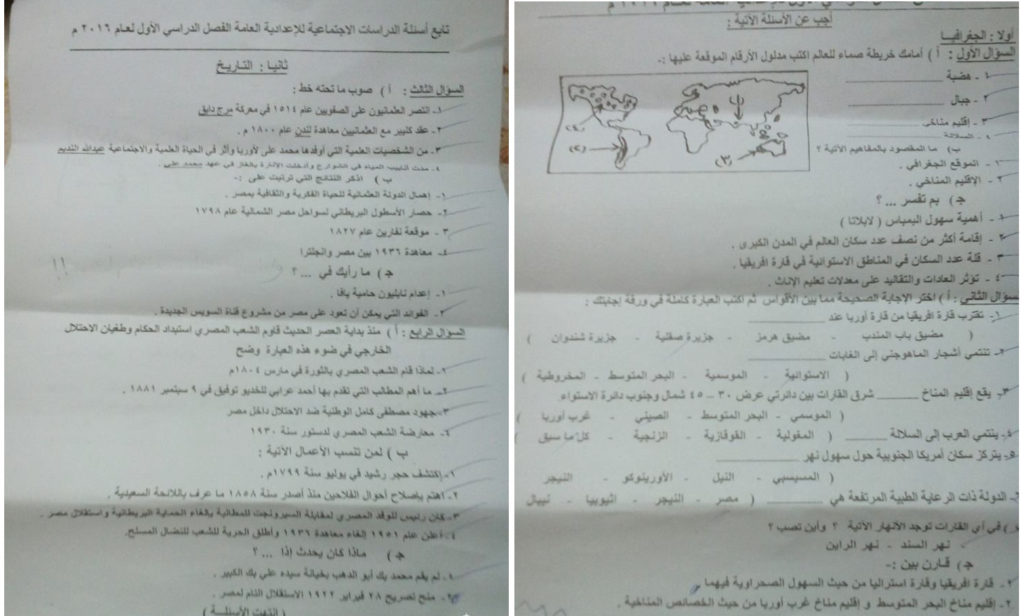 الدراسات الاجتماعية امتحان الدراسات الاجتماعية للصف الثالث الاعدادى محافظة الغربية الترم الاول 2016