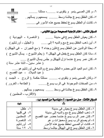 إمتحان تجريبي الوزارة التربية الدينية المسيحية