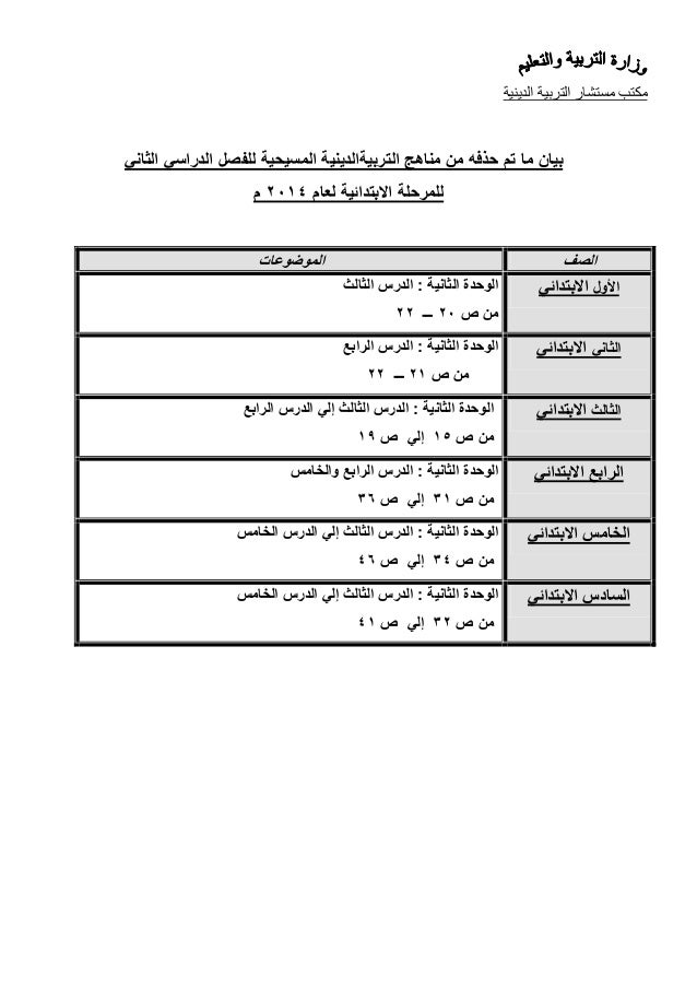 توزيع منهج التربية المسيحية و الأجزاء المحذوفة للفصل الدراسي الثاني 2