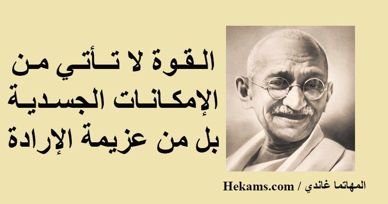 القوة لا تأتي من الإمكانات الجسدية بل من عزيمة الإرادة المهاتما غاندي حكم