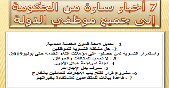 الحكومة المصرية تعلن 7 اخبار سارة للعاملين بالدولة التسوية والغاء تجميد المكافأت والحوافز وصرف بدل الاجازات للتفاصيل هنا