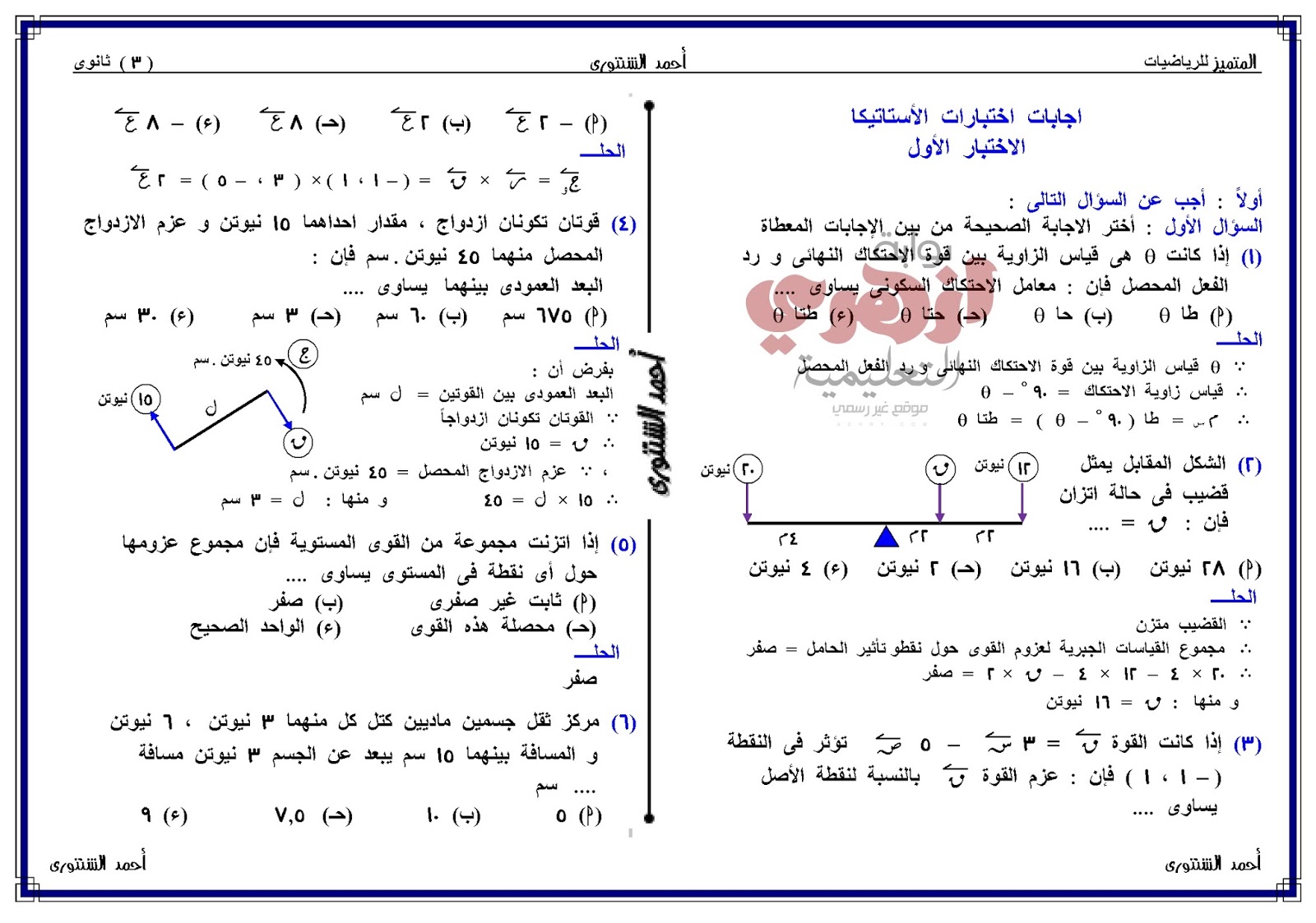 مذكرة استاتيكا للصف الثالث الثانوى 2016. نقدم لكم اليوم أفضل مذكرة فى شرح قسم الاستاتيكا فى مادة الرياضيات للصف الثالث الثانوى وتشمل جميع دروس منهج الاستاتيكا بأسلوب مبسط وسهل حتى تتمكن من. المحتويات 1 معلومات حول مذكرة الاستاتيكا 2 شاهد مذكرة استاتيكا للصف الثالث الثانوي 2 1 لتحميل مذكرة الاستاتيكا للصف الثالث الثانوي معلومات حول مذكرة. مذكرة استاتيكا للصف الثالث الثانوي للاستاذ ابراهيم الاحمدى ابراهيم. مدرستى مذكرة الأدهم فى شرح منهج الاستاتيكا للثانوية العامة والأزهرية 2019 للأستاذ محمد أدهم مذكرة شرح الاستاتيكا للصف الثالث الثانوى عام وأزهر2019 مستر محمد أدهم.