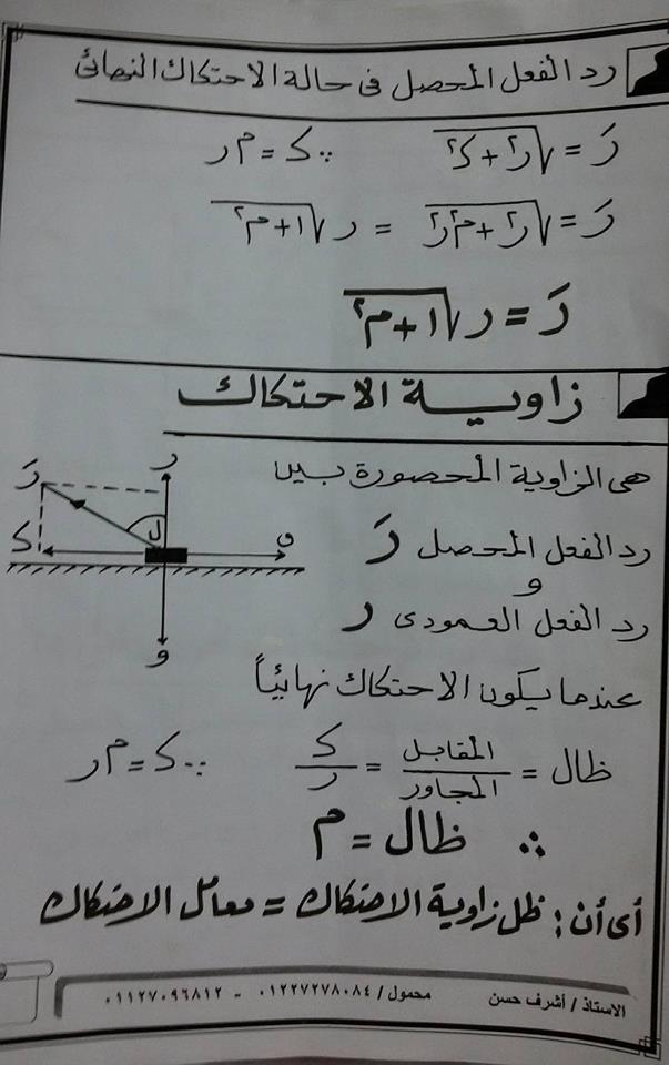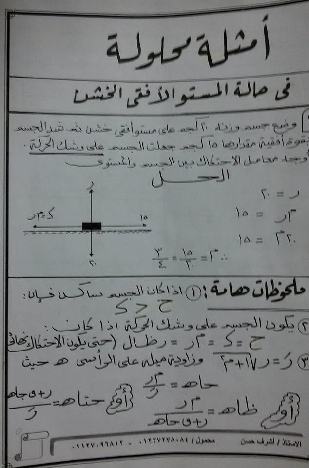 مذكرة استاتيكا للصف الثالث الثانوى 2016
