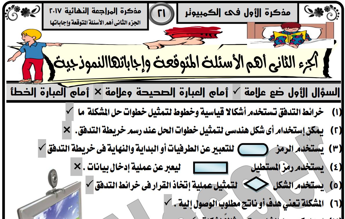 مذكرة حاسب الى للصف الثالث الاعدادى الترم الاول الامتحان التعليمى