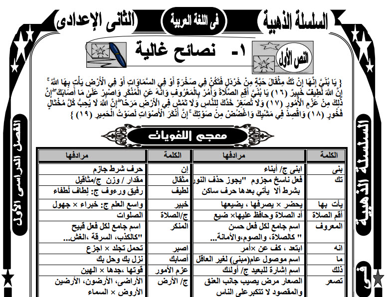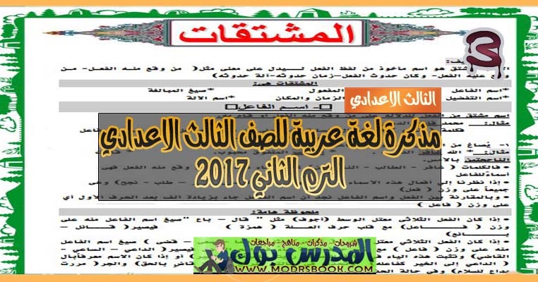 مذكرة لغة عربية الصف الثالث الاعدادي ترم ثاني 2017