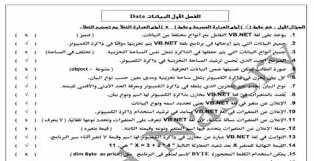 مراجعة حاسب الي للصف الثالث الاعدادي 2019 منسق وجاهزة للطباعة