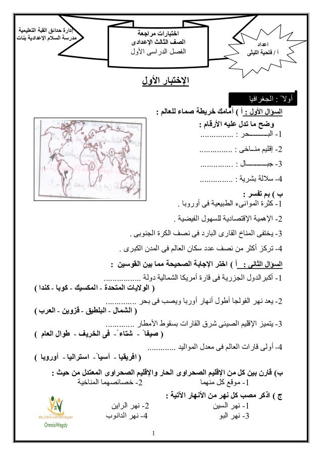 امتحان الدراسات الاجتماعية للشهادة الاعدادية ازهر 2015 2016 ترم اول Youtube