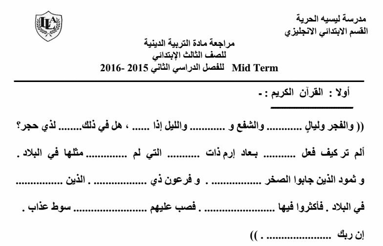 تحميل مذكرة مراجعة ميد تيرم التربية الدينية الاسلامية للثالث الابتدائى الترم الثانى 2016