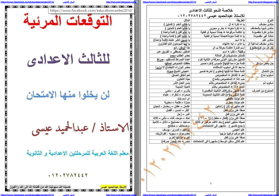 التوقعات المرئية للغة العربية للثالث الاعدادى ترم اول لن يخرج عنها اى امتحان عربى
